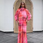 Bold and unapologetically luxe, this ombré maxi dress blends art and elegance in equal measure. Featuring Flaunt Archive’s custom monogram print in radiant pink, coral, and orange tones, it’s cut in a flowing silhouette with gathered details, bishop sleeves, and a tiered ruffle hem. A true statement piece for day or night. Made in Lagos, Nigeria.